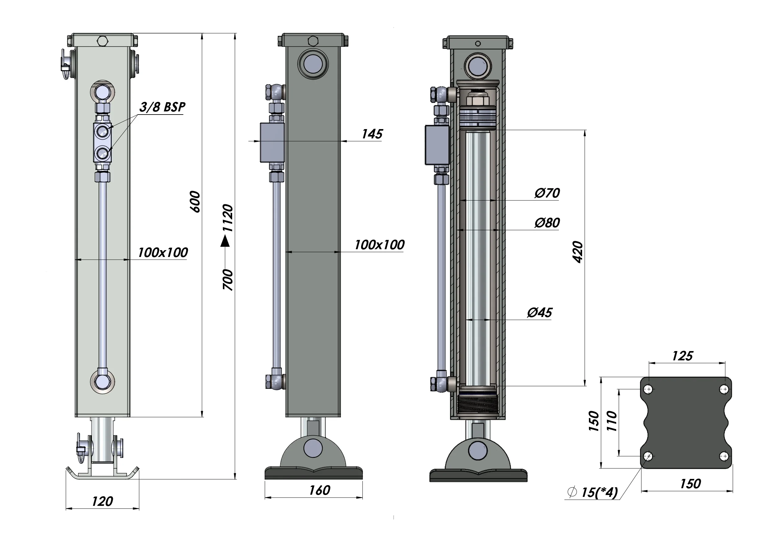 DVOSMJERNA HIDRAULIČNA POTPORNA NOGA (100x100x700 mm) - HOD 420 mm - 5.000 kg