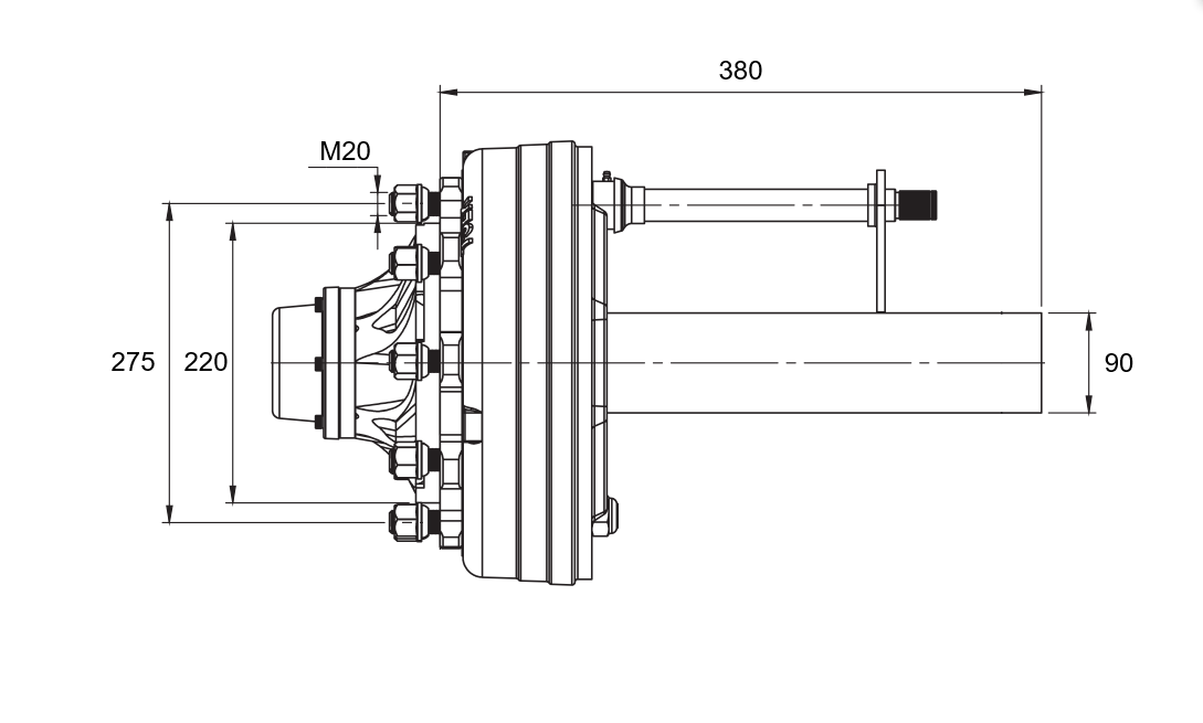 POLUOSOVINA S KOČNICAMA - 5000 kg (8 VIJAKA) - 380 mm