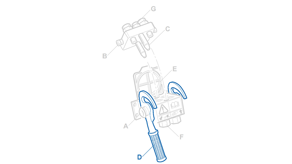Alavanca original para o acoplamento rápido Multi-Faster, projetada para a parte fixa. Permite conexão/desconexão rápida e uniforme das linhas hidráulicas e garante travamento mecânico confiável na posição de trabalho. O design ergonômico e a construção robusta asseguram longa vida útil e uso seguro em condições exigentes.